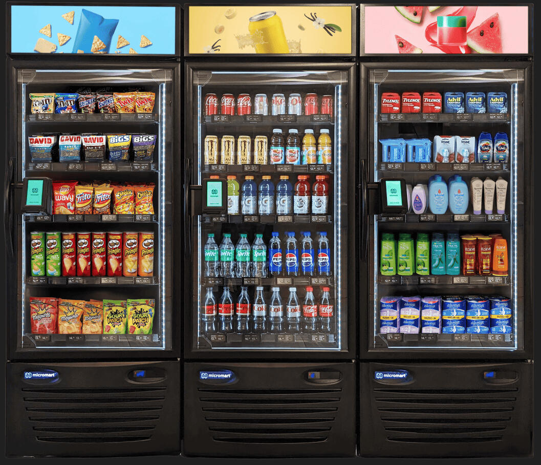 A custom micro-market kiosk with fresh food, drinks, and snacks—open 24/7. No vending limits, no maintenance, and ZERO cost to your business.